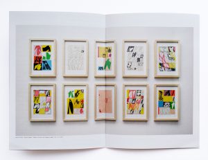 24 pages, 21 x 14,7 cm, full—colour digital print, each cover has a unique over cover covering a tiny portion of the front and extending on most of the back. Each over cover is cut from a sheet of marker drawings on fluorescent paper by the artist, numbered edition of 40.
