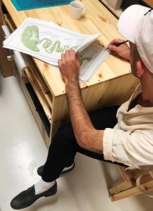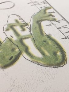 Three colours risograph print on 160 gsm Coloraction – Light Gray paper, 42 x 29,7 cm (16.5 x 11.5 in). Each copy is signed and numbered by the artist. Limited Edition of 35/35, 2019.