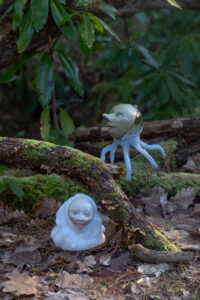 NEVVEN is proud to present A Different Kind of Love a solo show by Danish artist Aniara Omann presenting digitally a new body of sculptural works installed in the luxuriant off—site setting of a forest outside Glasgow, UK. Inspired by the oneiric settings of Early 1900s Nordic children illustrations, such as the work of Elsa Beskow, Omann installs her newest sculptures, mixed media accrochages of ceramics, eco-resin, moss, felted wool and silicone, in the setting of a forest and in the shadows, hidden niches and meadows where only a curious child would look for them.