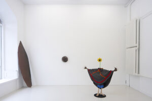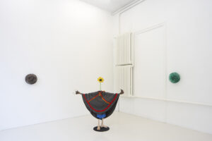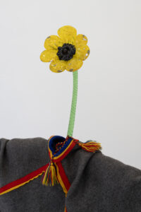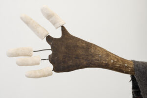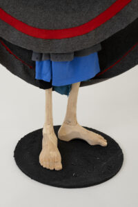 Olof Marsja, Ah Vår! [Ah Spring!] (detail), 2024 (Glass, alder wood, plywood, sand, wood glue, reindeer antlers, jesmonite, t-shirts, luhkka, 133 x 137 x 40 cm).