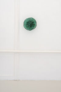 Olof Marsja, Melting Pot Green (detail), 2024 (Glass, aluminium, 30 x 30 x 20 cm).