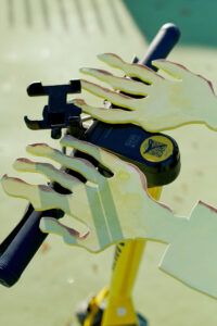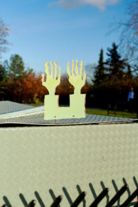 Marianne Hurum, Hender og Rådhuset (Hands and the Town Hall) (detail), 2020 (Lacquer coated aluminium on steel stand, 47 x 36 x 5 cm / 19 x 14 x 2 in).