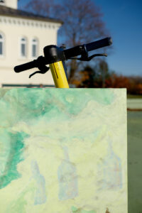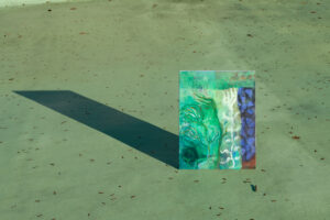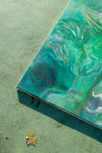Inspired by well known historical precedents, like the famous Hockney’s underwater pool decorations, Hurum chooses to place the artworks in an environment characterised by the presence of water, which resounds with and enhance the fluidity of her marks and the organic shapes of her sculptures. By placing, or better displacing, the works in such environment, the artist digs deeper in the connection between the fluidity of the painterly gesture and the actual properties of water, which involves an investigation on both the physical sensations induced by water in the body and the artistic sensibility involved in capturing such subject.