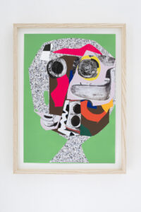 Eric Magassa, SPELLS (ongoing series) (detail), 2022 (Collage, vinyl film and spray paint on acid-free paper, frame, 48,5 x 36 cm).