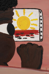 Devin Troy Strother, Knock Knock, Knocking on Philip’s Door (detail), 2023 (Oil and acrylic on canvas, 76 x 76 cm).