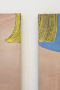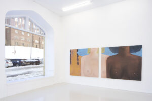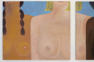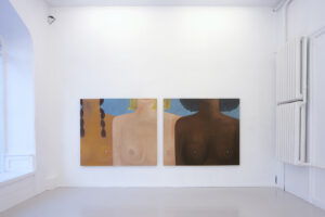 (1) Kyvèli Zoi, Spectators, 2023 (Oil on linen, diptych, dimensions variable, 140 x 160 cm each).