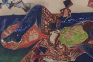 In a tradition whose origins are lost in the Nordic middle ages, it is said that during the night of Midsummer’s eve powerful magic can be performed and that the borders between the spiritual world and ours are thinner. Among the many rituals and celebrations connected to this special day in the Swedish calendar, a folk tradition tells that if at least seven different kinds of flowers are picked following a specific ritual and placed under ones’ own pillow during this magical night, one would dream of the person that they will marry. Around the middle of August, instead, in what is considered the midst of Summer in Southern Europe, large bonfires are lit on the hills of Piedmont, in Italy. A ritual descending from a past more ancient even than the Romans, these bonfires are both gifts and spells, to thank the gods on one side and scare the evil spirits which might destroy the crops on the coming winter, on the other. Alice Visentin’s paintings and drawings originate precisely in the light of stories, spells, and once living, now disappearing traditions as these. Stubbornly fascinated by this fading world, Visentin digs into a history that often involves shame: shame of a rural past, of poverty, or of its connections with magic and the occult, which has no place in nowadays world, and where tales, once sung by choirs, are now only told in whispers. Like a dowser with her stick, she feels for traditions that seem forgotten but, like a subterranean river, continue to flow underground. This is why Visentin refers to this world as underwater, Subacqueo, hidden under the surface, but still present, a whole world of knowledge, transmitted orally, which we have only lost the ability to understand.